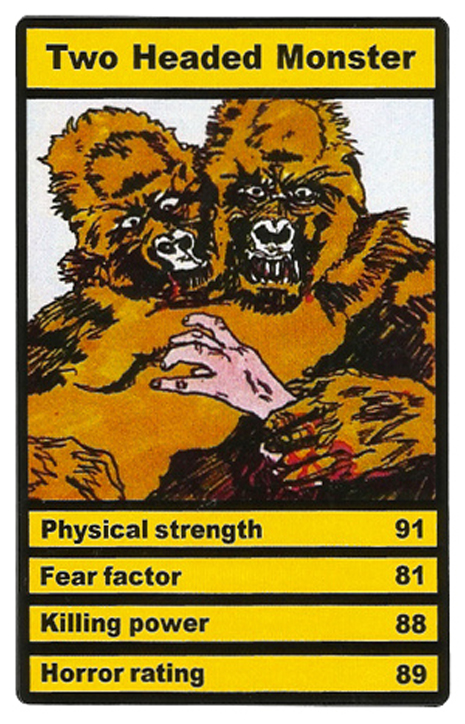 Now a doubled headed gorilla might well suggest a very lazy card creation. Draw an ape, add an extra bonce, chuck in a little bit of blood and a severed limb to keep the kiddies happy, and voilĂ  we have a brand new monster at very notice! Job done!